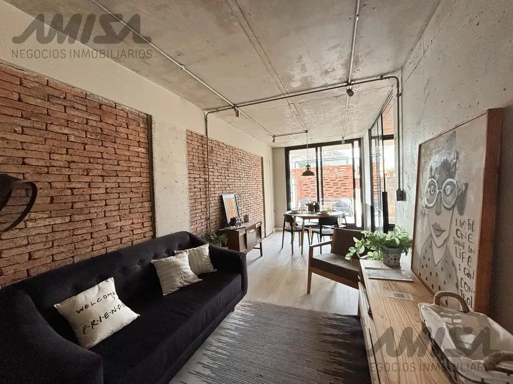 Departamento de 1 dormitorio con amplio balcón-terraza. Excelente calidad constructiva con pisos flotantes de madera en combinación con porcelanato, aberturas de aluminio negras con DVH, preinstalación para A/A, caldera y radiador, instalación eléctrica a la vista con estilo industrial, placares con frentes colocados, paredes de ladrillos vistos y detalles en hormigón, en combinación con algunos cielorrasos en yeso, e iluminación exterior colocada. Cocina con mobiliario de cocina completo, alacena, bajo mesada, espacio técnico para heladera, bacha de acero inoxidable, mesada de granito negro, horno, anafe e instalación para lavarropas. Baño con loza sanitaria y griferías de primera marca, mesada de terrazo con bacha de cerámica, espejo y accesorios colocados, revestimiento acorde en paredes, mampara de vidrio y preinstalación para extractores.