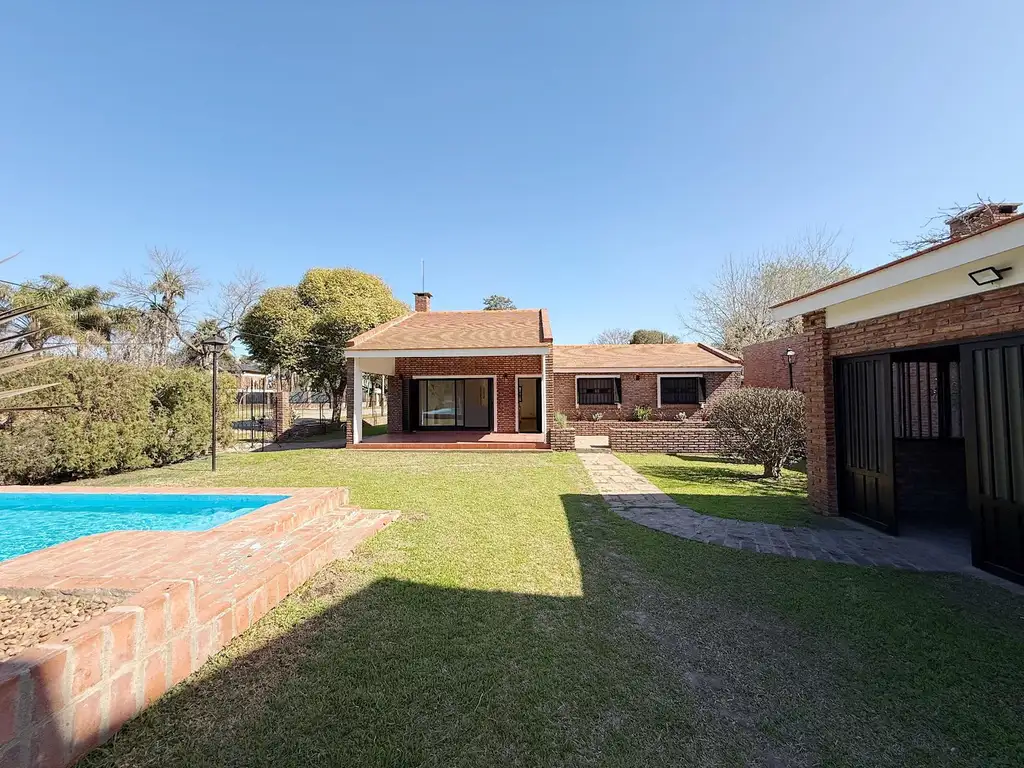 En el exterior, se destaca una galería de 31 m2 equipada con parrillero, ideal para reuniones sociales. Además, cuenta con pileta, cochera, dependencia de servicio y un amplio jardín.