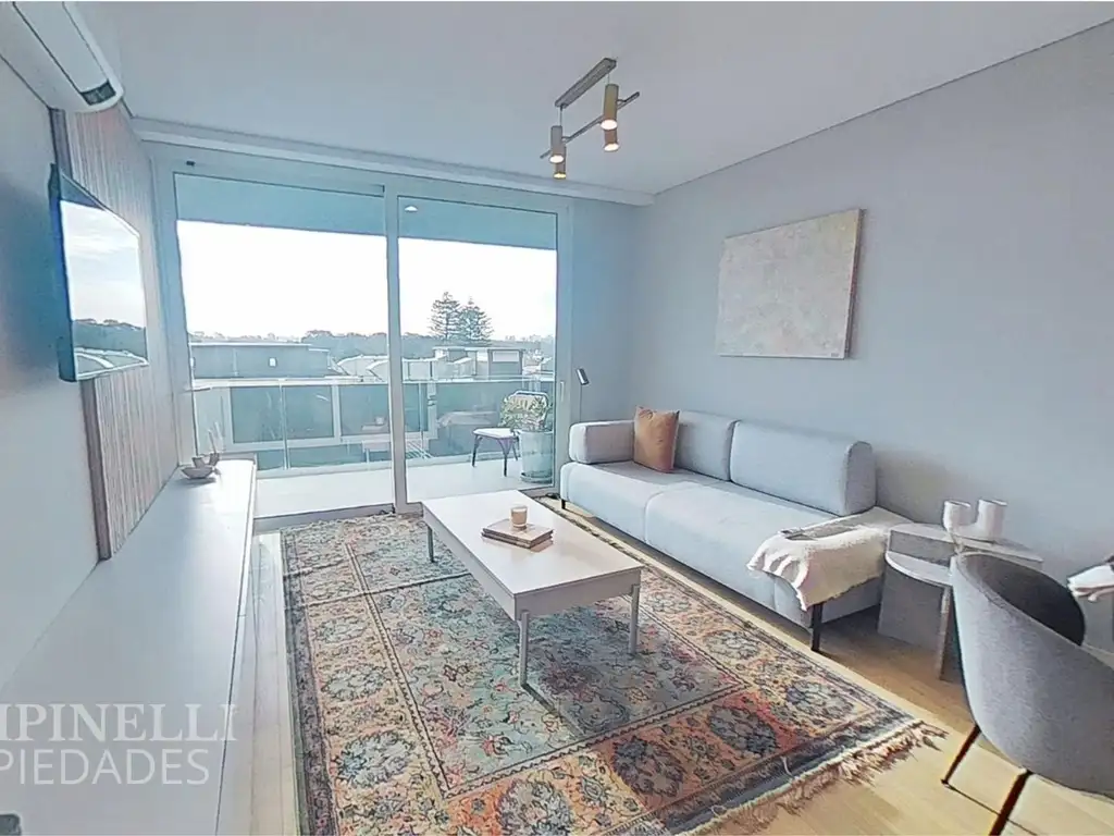 Cuenta con 1 dormitorio en suite con vestidor, luminoso living comedor integrado a cocina y balcón terraza de 14,3 m2. Incluye horno empotrado, anafe, campana de extracción, conexiones para lava-secarropas, calefacción por losa radiante eléctrica con control por ambiente y aire acondicionado.