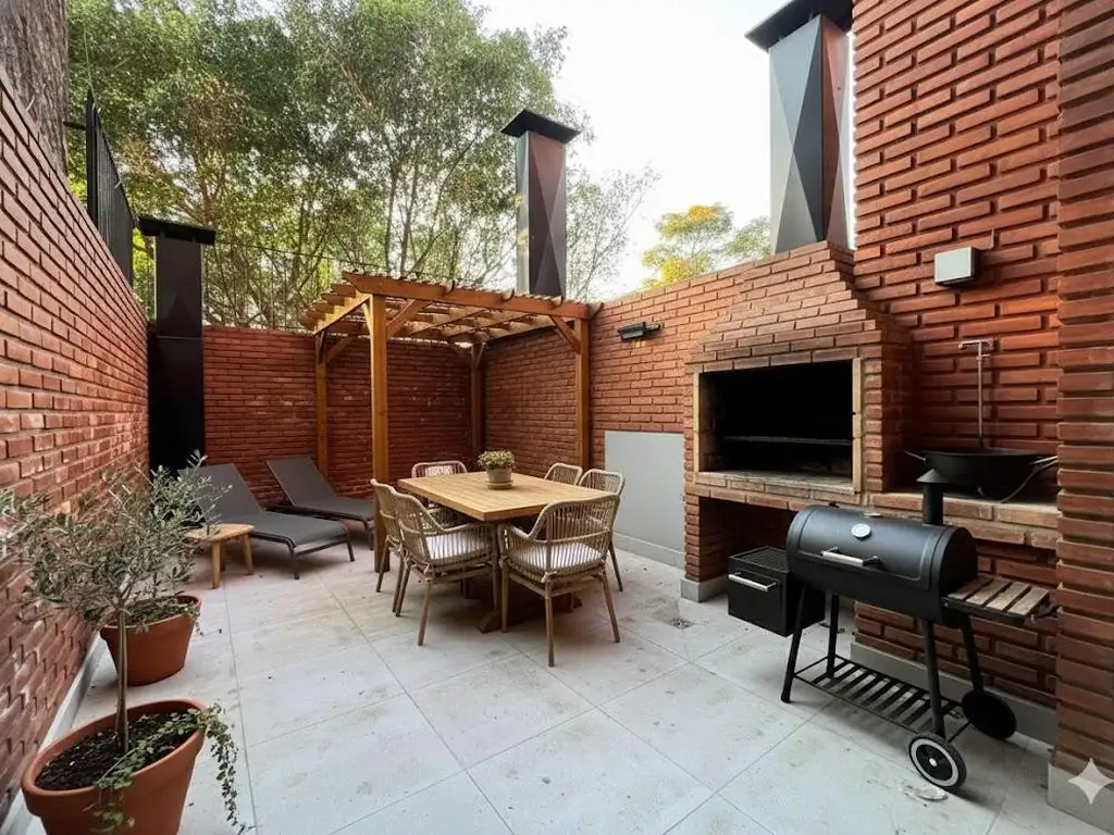 Descripción:Ingresamos al departamento directamente por el comedor, un espacio luminoso gracias a su conexión con el patio. La cocina, integrada al ambiente, está equipada con cocina a gas empotrada, horno a gas, mesada de mármol negro y amoblamiento con puertas de cierre suave. El patio, al que se accede desde el comedor, cuenta con parrilla de uso exclusivo. Además, la unidad dispone de un baño completo.