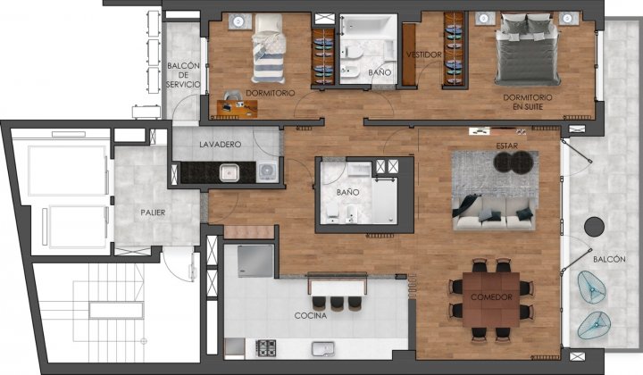 Las unidades se componen de un amplio estar comedor, muy luminoso, con balcon al frente.
