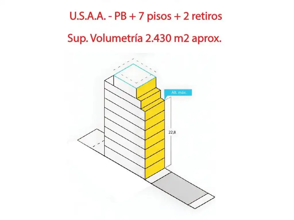 Altura Máxima: 22 m - (PB + 7 PISOS + 2 RETIROS)