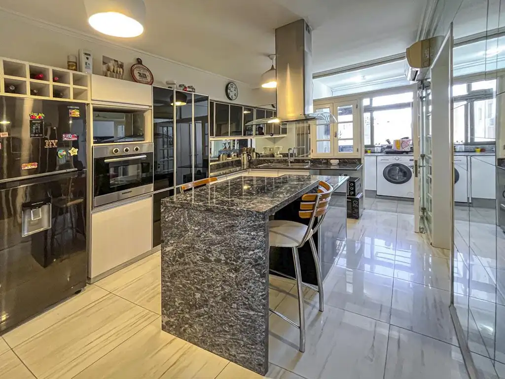 Departamento de pisos exclusivos muy funcional totalmente remodelado con materiales y mobiliario de primeras marcas. Pisos nuevos de porcelanato símil madera o símil mármol de carrara según ambientes. Escalera de madera oscura, dormitorios con madera de ingeniería. Aberturas de aluminio y vitreaux al frente protegidos con blindex. Placares nuevos de primera calidad con rodamientos y perfiles de aluminio, placas espejadas o de vidrio esmerilado según ambientes, todos con luces internas. Cocina con bajo mesadas de madera, y alacenas de vidrio negro. Isla con horno y anafes eléctricos separados, extractor de acero con vidrio de primeras marcas. Pico de gas listo para eventualmente cambiar la cocina por modelo a gas. Calefacción mediante 2 hogares y 1 estufa de tiro balanceado. Agua caliente de termotanque a gas de 120 litros. 6 artefactos de A/A en ubicaciones estratégicas. Instalaciones nuevas: eléctricas, gas y agua. Baño premium con porcelanato, revestimiento en paredes, mampara de vidrio, hidromasaje y detalles en mármol. Cochera disponible.
