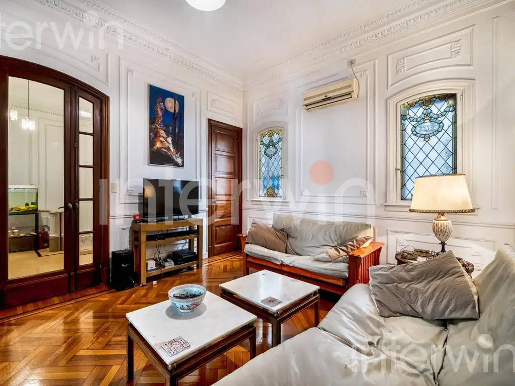 PH desarrollado en tres plantas, tipo casa, con entrada independiente y cochera propia. Esta propiedad se destaca por su excelente estado de conservación y su notable valor arquitectónico, manteniendo elementos originales de época como pisos de madera, vitraux y molduras.