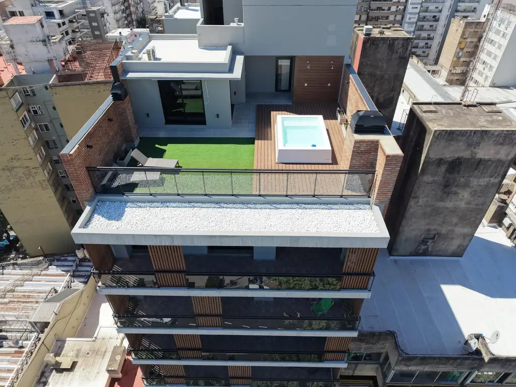 Terraza de uso común con pileta, quincho y parrillero.