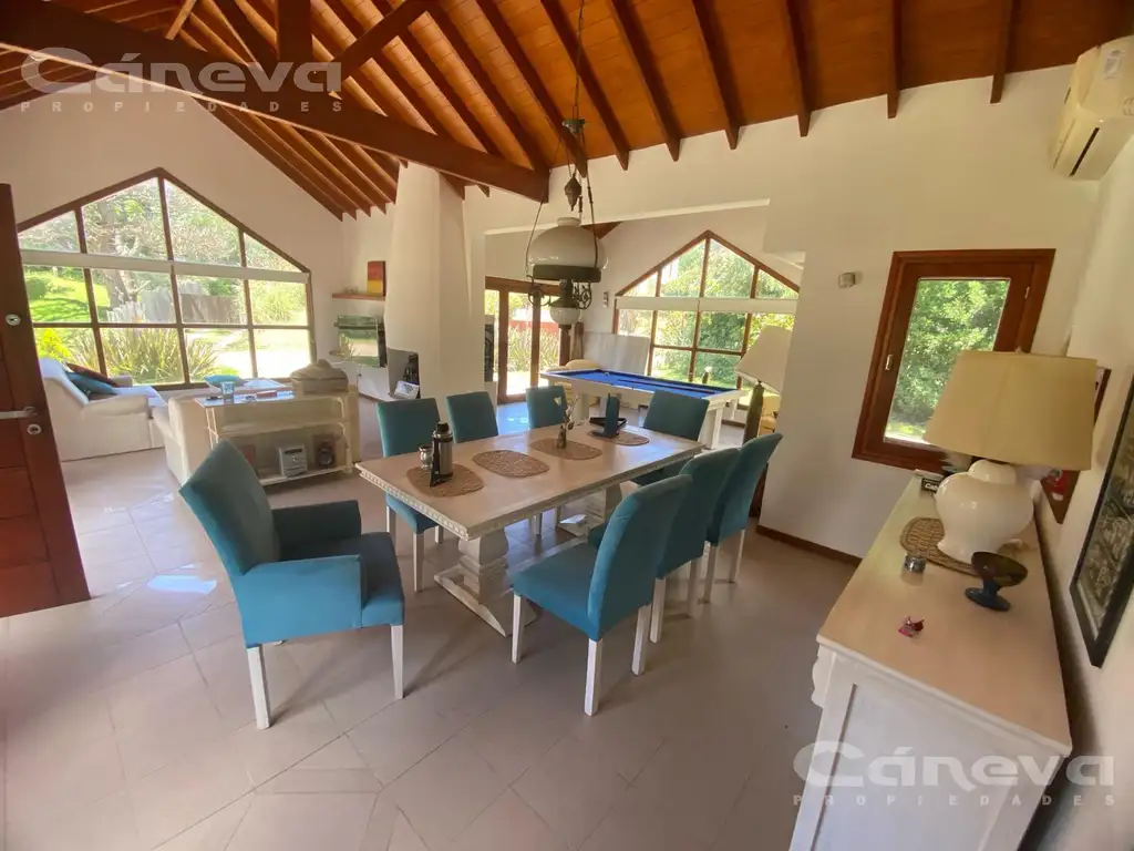 La casa cuenta con amplios espacios luminosos, ideales para compartir en familia o con amigos. Su diseño combina detalles modernos con un toque rústico, creando un ambiente cálido y acogedor. Toda en una planta, dispone de 5 dormitorios en suite con accesos independientes, un toilette, cocina equipada, un living y comedor espacioso con vistas a los jardines, epacio de recreación o quincho cerrado, parrilla, quincho exterior abierto y lavadero.