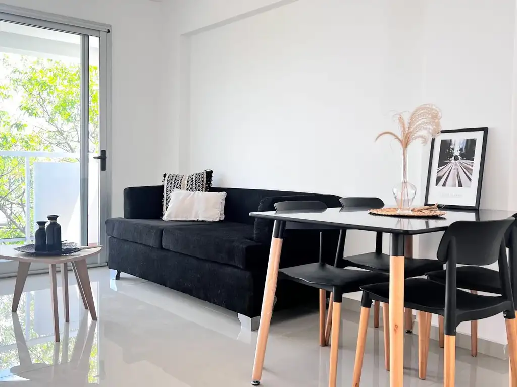 Departamento pasante a estrenar de 1 dormitorio, con detalles de categoría. Cuenta con cocina integrada con muebles bajo y sobre mesada, living comedor, balcon, lavadero semicubierto separado, baño completo con ventilacion natural, dormitorio con frente e interiores de placard. Calefacción por radiadores. Pre instalación para Aire Acondicionado. Pisos de porcelanato pulido en living-comedor. Aberturas de Aluminio A-30 DVH.