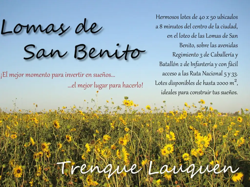 Dos excelentes terrenos linderos ubicados en el barrio residencial Lomas de San Benito, una de las zonas con mayor desarrollo de Trenque Lauquen.