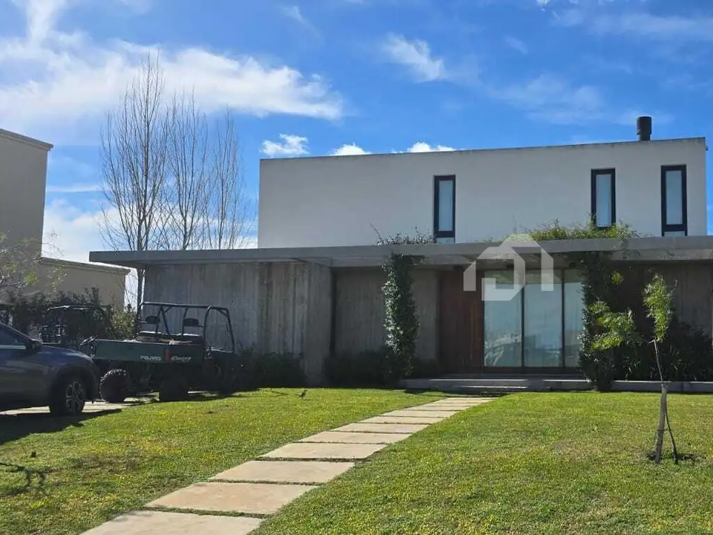 Casa 2 plantas de cuenta con 160 m2 cubiertos y 80 m2 semicubiertos , lote de 980 m2 a la laguna , desde toda la casa se puede contemplar el agua,Construida en hormigón, en planta baja cielorrasos altos en hormigón visto (2.90 mts) , aberturas en pvc negro dvh y vidrio laminado 4 +4 mm , de amplio tamaño ( piso pared ) . Amplia cocina comedor, con horno eléctrico y anafe a Gas, mesadas de marmol brasil leatherMuebles en madera guatambu (no melamina) combinados con laqueado gris grafito.