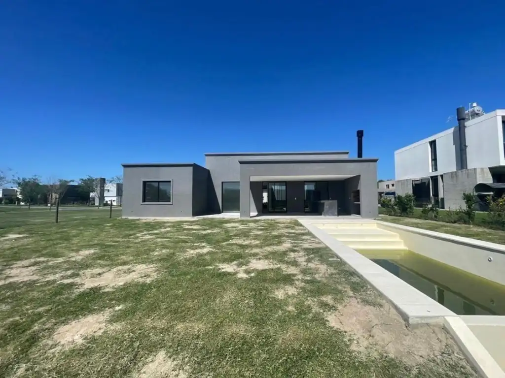 En el área privada se encuentran dos dormitorios al frente, un baño completo y una master suite con una privilegiada vista al agua, vestidor completamente equipado y baño con ducha de excelente calidad. El exterior se destaca por su amplia galería con parrilla, isla con bacha y una piscina con visuales abiertas a la laguna, creando un entorno ideal para el disfrute y la relajación.
