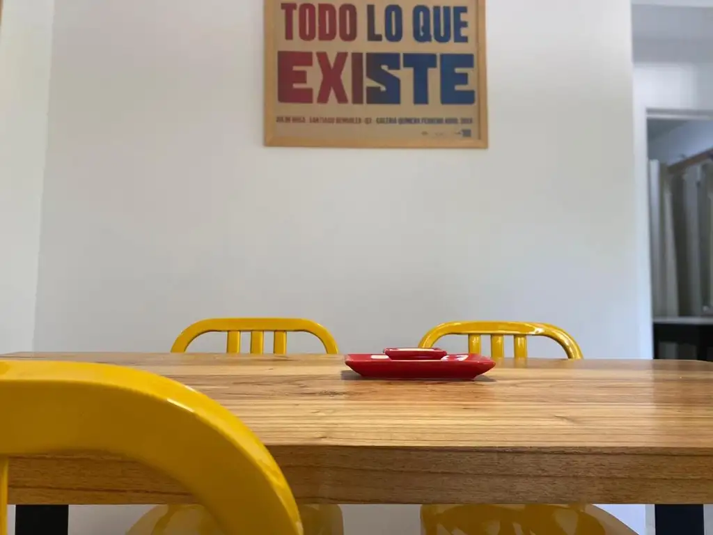 Cocina completa a gas, vajilla, electrodomésticos y lavarropas, amplio living con un imponente sillón tapizado con cuero natural, comedor donde se distingue una mesa de madera maciza, 2 dormitorios con placard y baño completo.