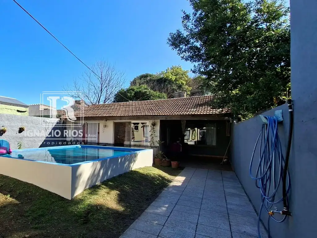 Jardín divisorio con gran pileta de natación de cemento de 5x3, Con una profundidad de 1m.