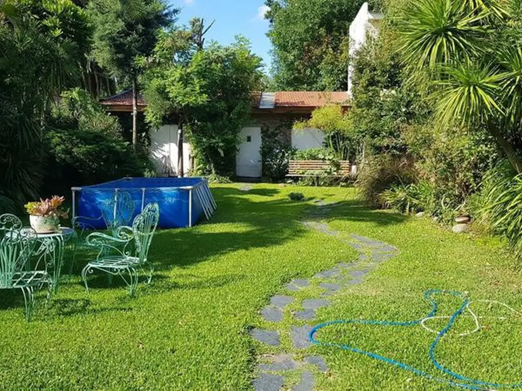 Lavadero cubierto con baño auxiliar, parque con pileta