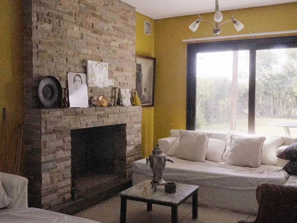 El exterior es un verdadero oasis: pileta, jardín parquizado con grama bahiana, parrilla y patio cubierto para reuniones inolvidables. Además, cuenta con dependencia de servicio y cochera cubierta para dos vehículos. Lote perimetral a campo ruta 27.