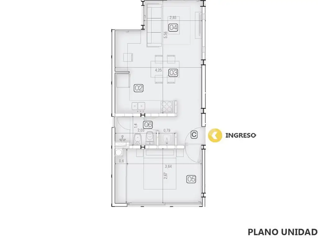 Amplio estar comedor con cocina integrada. Gran iluminación natural por balcón con salida al exterior. Baño completo y dormitorio con placard empotrado.