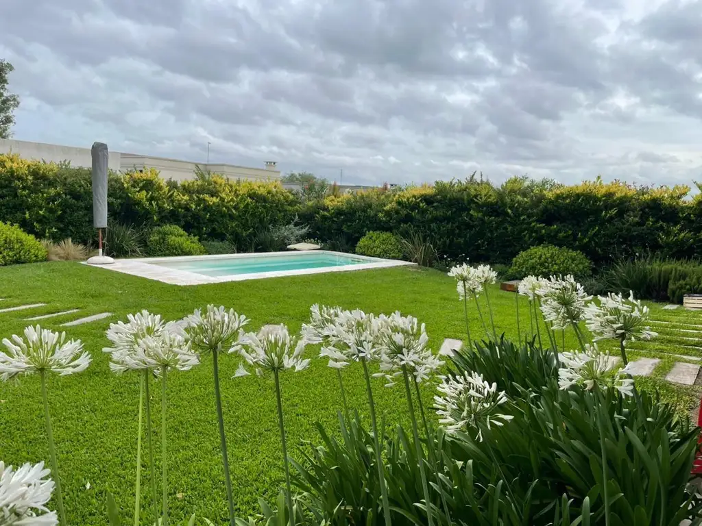 La pileta de fibra de 7 x 3,5 m completa este espacio ideal para disfrutar en familia y con amigos.