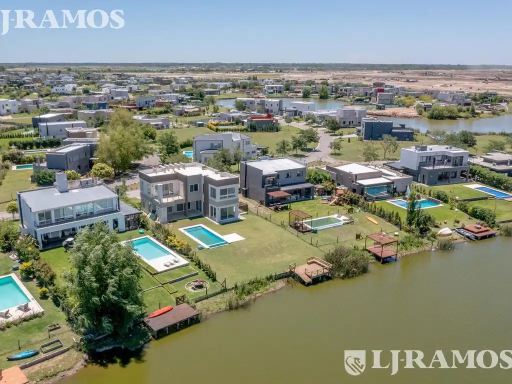 La zona residencial se compone de los barrios: Puerto, Islas, Golf y Norte, con una vía de acceso rápido que los vincula. La superficie promedio de los 2335 lotes es de 800m2, 65% de ellos con vista a la laguna.