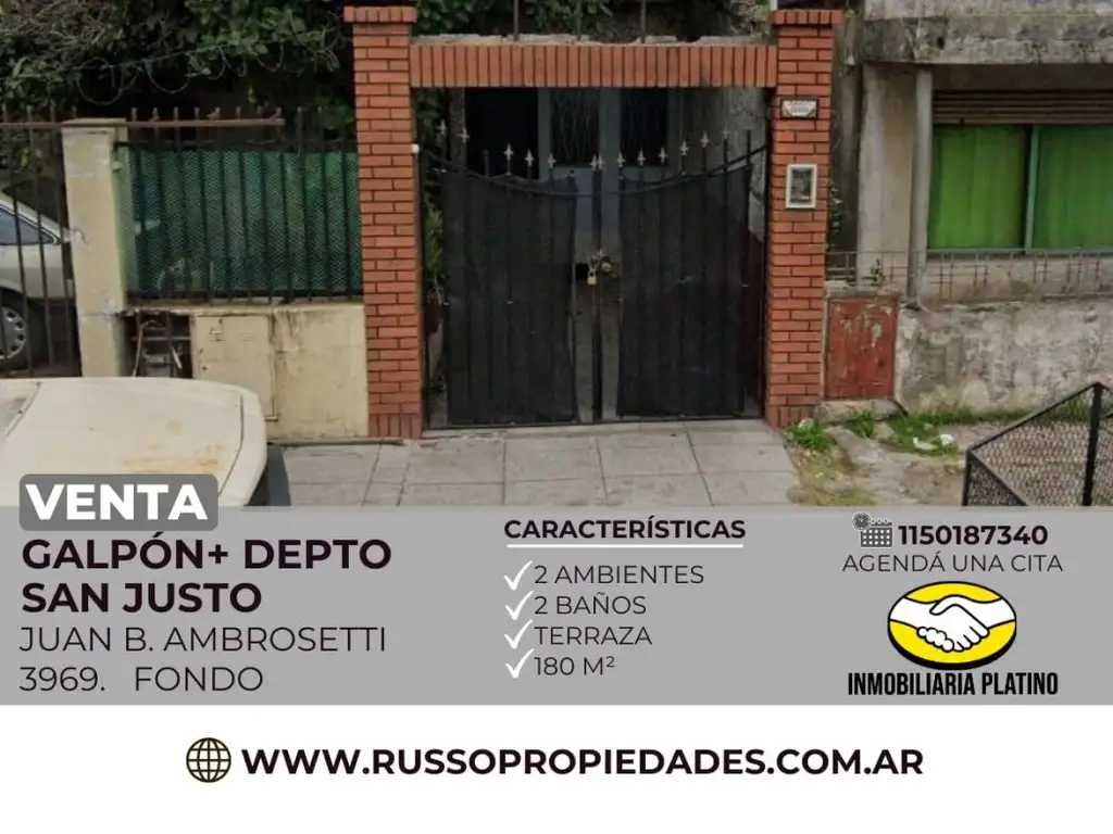 Venta galpon al fondo con departamento 2 ambientes San Justo