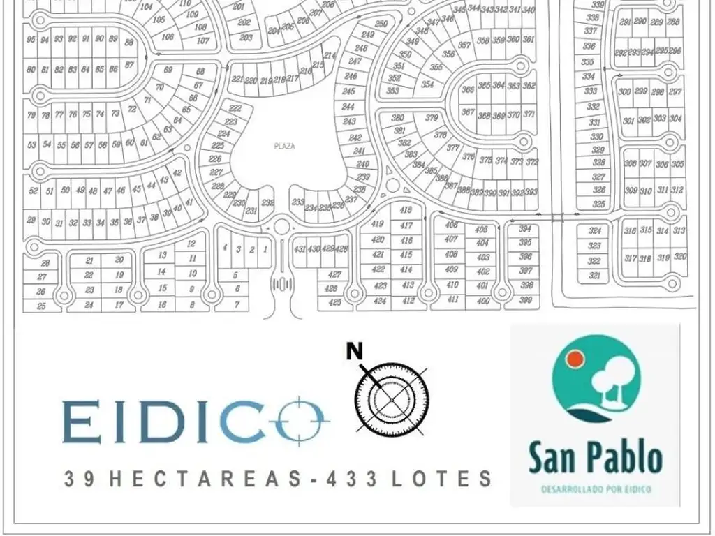 Desarrollado por Eidico, el barrio San Pablo tiene Excelente ubicación, a 300mts de ruta 234, 10 minutos del Hospital Austral, dos colegios linderos. Son 30 Hectáreas en Derqui, con 430 lotes de 500m2 promedio. A minutos del centro urbano y de los mejores servicios de Pilar (Cine Village Pilar, Bancos, Restaurantes, Gimnasios, Hotel 5*), para vivir en una zona en crecimiento y rodeado de un paisaje de abundante verde. Los Colegios Los Candiles y Los Caminos de Apdes están a metros del barrio.Contempla espacios verdes y deportivos de uso común. Un barrio desarrollado con un diseño que incluye asfalto con cordón cuneta, redes subterráneas de agua, cloaca, electricidad y gas. Cuenta con un edificio de acceso, dos canchas de tenis, una de futbol, un salón de usos múltiples, plaza de juegos y seguridad 24 hs.Expensas mensuales de $ 8500 aproximadamente