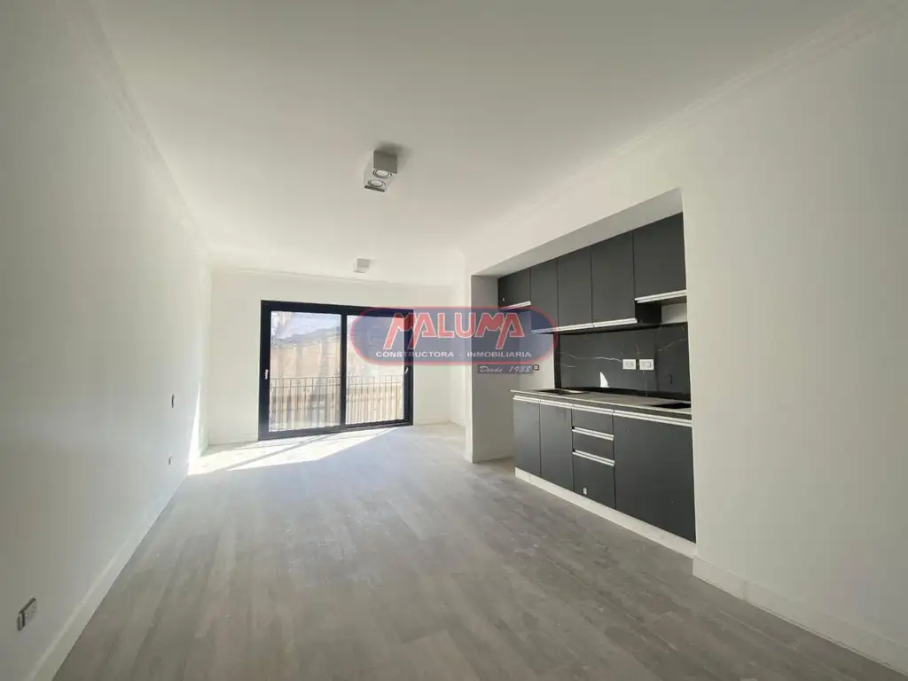 Monoambiente único disponible en contrafrente, con la misma calidad constructiva y terminaciones que las anteriores, cocina integrada con muebles de melamina, baño completo con box de ducha, aire acondicionado frío/calor, conexión para lavarropas, pisos de porcelanato símil madera gris y orientación noreste.