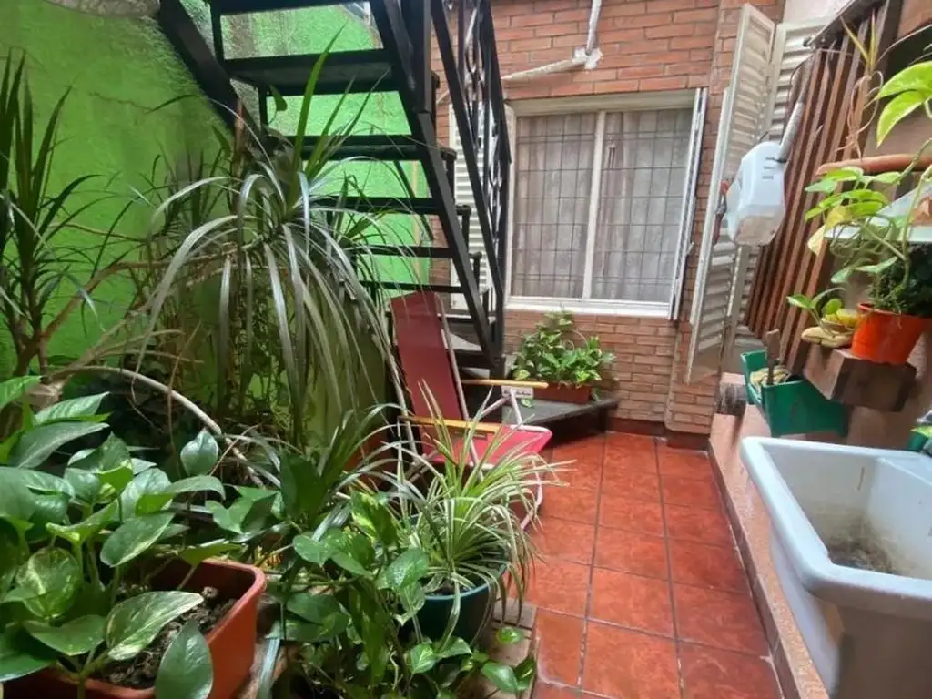 Patio con escalera y acceso a la planta alta que cuenta con :