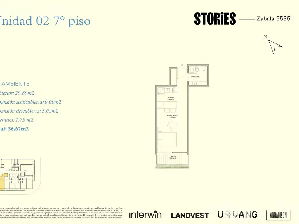 Todas las imágenes, planos, descripciones, y características indicadas son meramente referenciales e ilustrativas y podrán ser modificadas sin previo aviso. Las superficies indicadas son estimadas. Las superficies y medidas definitivas surgirán del plano de mensura final aprobado oportunamente por el GCBA. Las fechas de inicio de obra o posesión son estimadas, podrán ser reprogramadas por la Dirección de obra y dependerán a su vez de un proceso de aprobaciones municipales u otros organismos intervinientes. Los precios indicados podrán modificarse sin previo aviso. El interesado deberá realizar las verificaciones respectivas previamente a la realización de cualquier operación, requiriendo por sí o sus profesionales las copias necesarias de la documentación que corresponda.