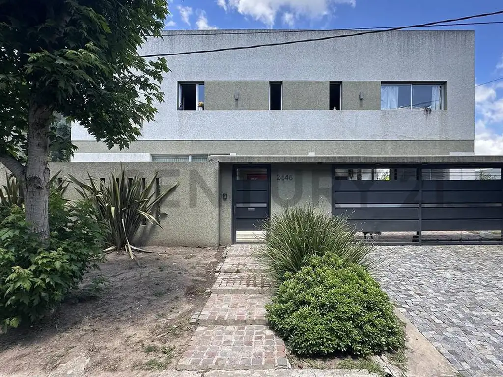 Diseño contemporáneo de 10 años de antigüedad. Rodeada de espacios verdes y jardines, la propiedad cuenta con un ingreso principal peatonal desde la vereda hacia un hall de entrada cubierto, con ingreso a la planta baja mediante una puerta doble de cedro de madera maciza. A su vez cuenta con cochera cubierta para dos vehículos con amplias bauleras y sector de guardado. Al mismo se ingresa por portón doble automatizado con espacio descubierto para dos vehículos más.La propiedad cuenta con pisos de madera natural y porcelanato, aberturas de aluminio anodizado con vidrios DVH con aislación térmica, y calefacción por radiadores en todos los ambientes de la casa. La propiedad esta emplazada centrada sobre el lote permitiendo ventilación e iluminación en todas las direcciones aprovechando la luz del día en todo momento como así también el contacto visual constante con los espacios verdes circundantes.
