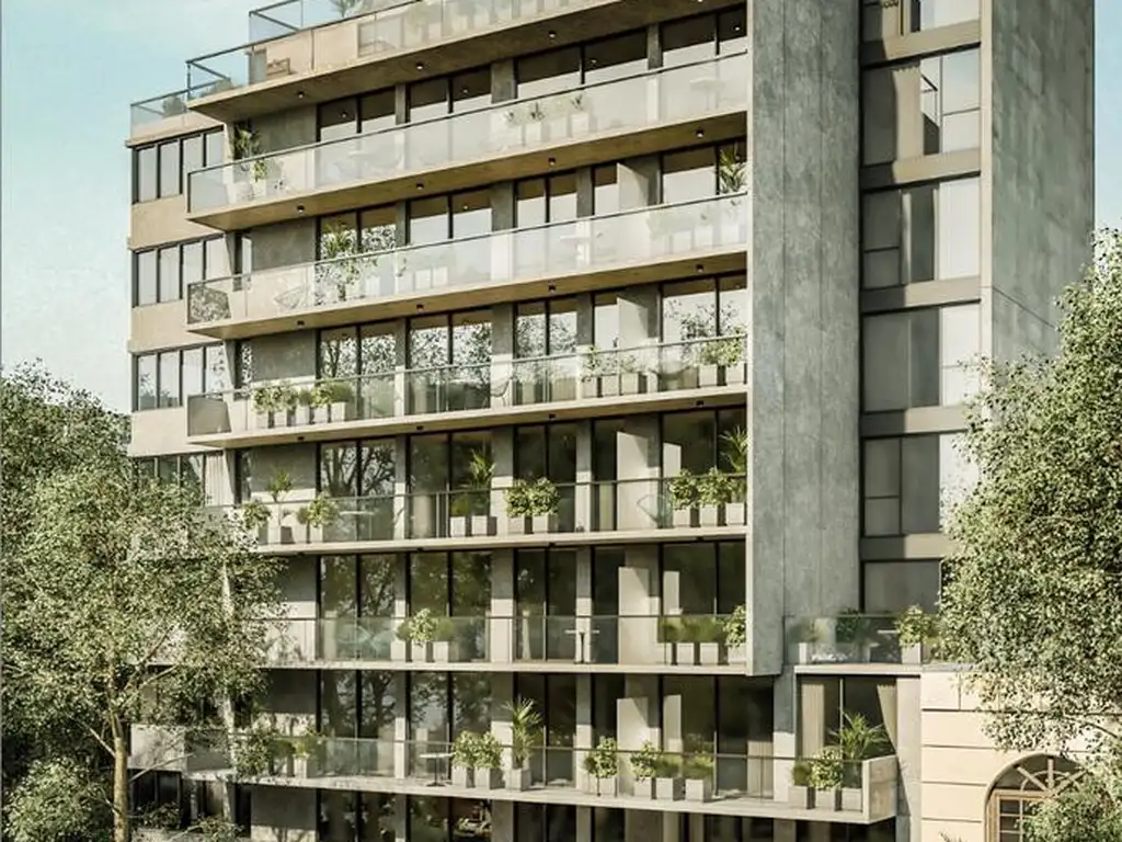Las unidades disponibles varían entre 65 y 206 m2, con opciones de 2 y 3 dormitorios más dependencias. Los departamentos están diseñados con balcones aterrazados que incluyen parrillas propias, ofreciendo un espacio ideal para disfrutar al aire libre. La unidad destacada cuenta con 4 ambientes, dependencia de servicio, un amplio balcón terraza y vistas al frente. El living comedor es espacioso, y la cocina es independiente con lavadero. El dormitorio principal es en suite, y existen dos baños adicionales, uno de ellos en la dependencia de servicio.