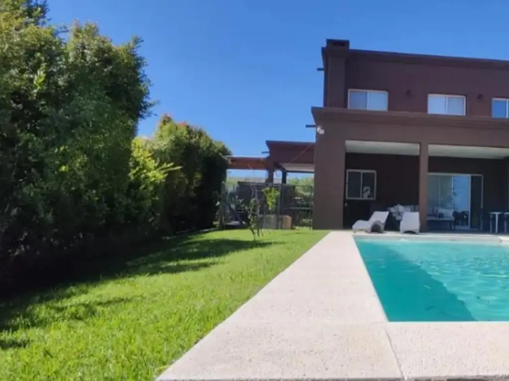 Casa de 200 metros cubiertos y 45 de galería, implantada sobre lote de 800 metros con salida a gran laguna central y cercana a la entrada.