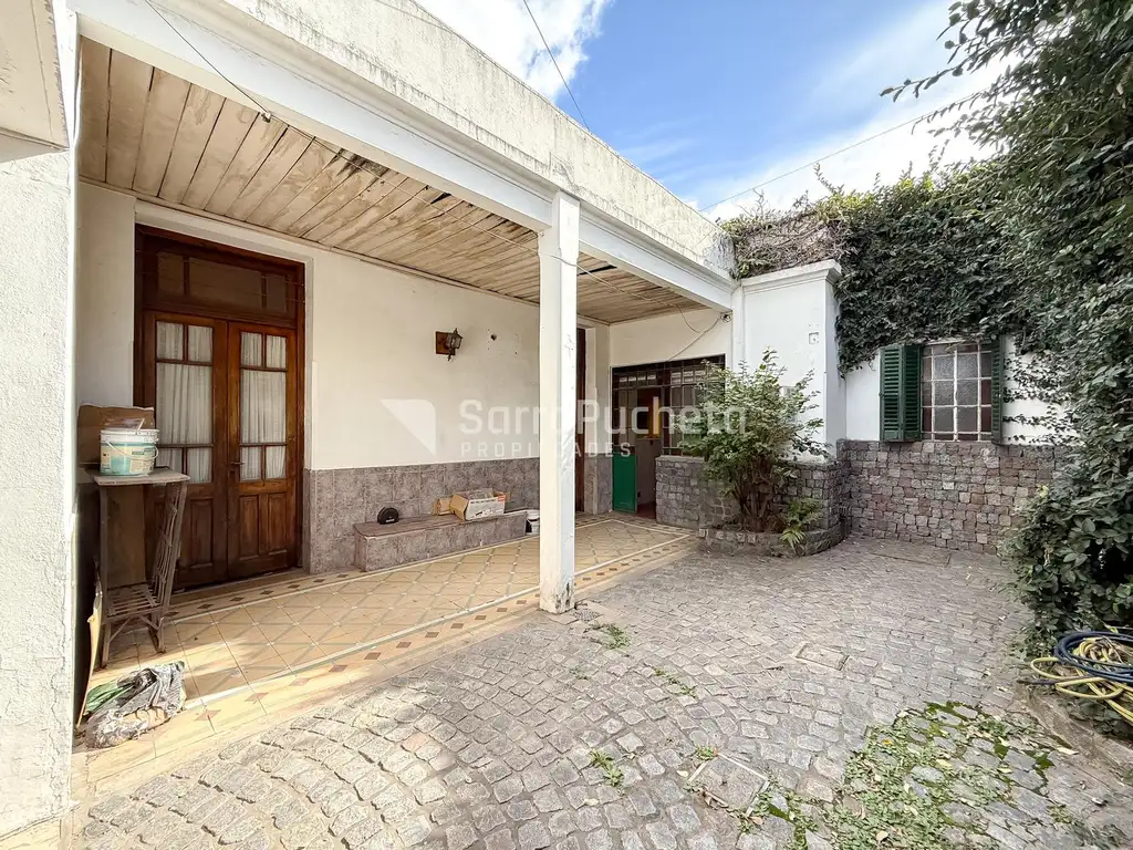Se trata de una casa tipo chorizo, con sectores de época que conservan pisos y detalles antiguos, y otra parte más moderna que permite pensar en distintas opciones de refacción. El ingreso es a través de una cochera techada y un patio con galería que conduce a la vivienda principal, donde se encuentran la cocina, un baño completo, tres habitaciones con pisos originales y un amplio ambiente al frente de estilo chorizo.