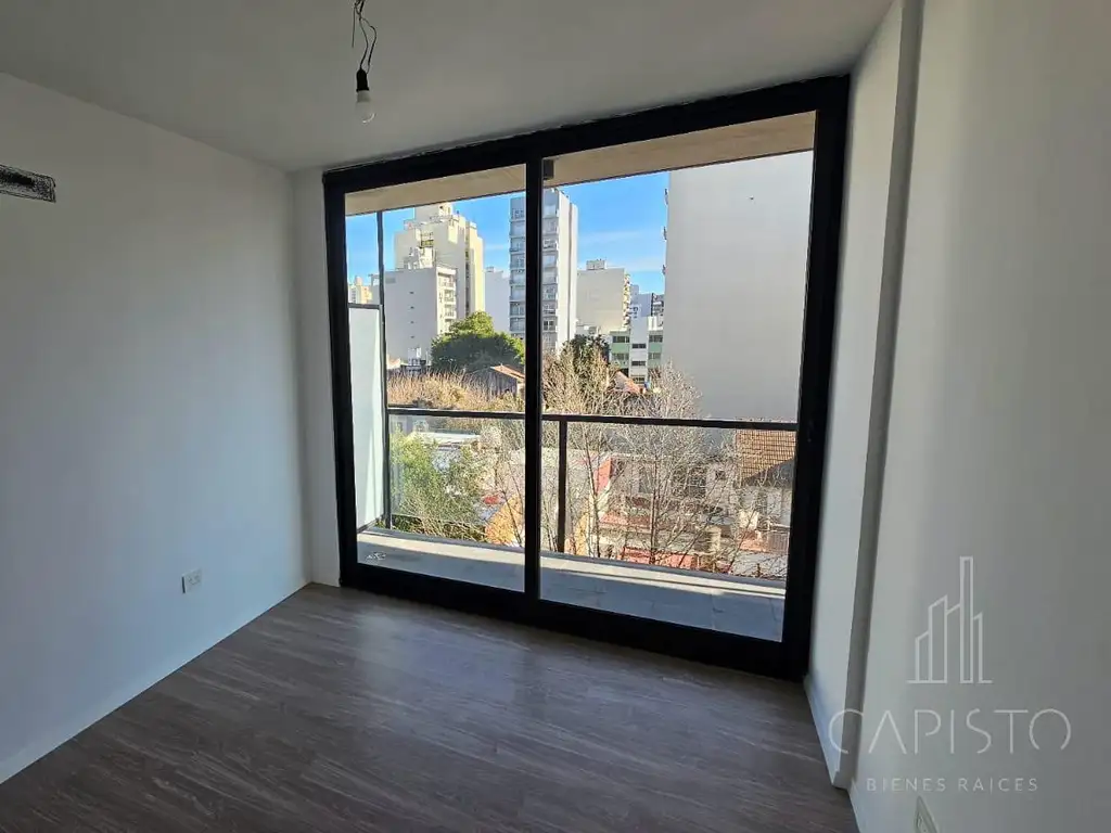 El dormitorio cuenta con amplios placares de piso a techo, que aportan estilo y practicidad, mientras que el baño se destaca por sus terminaciones de primera calidad.
