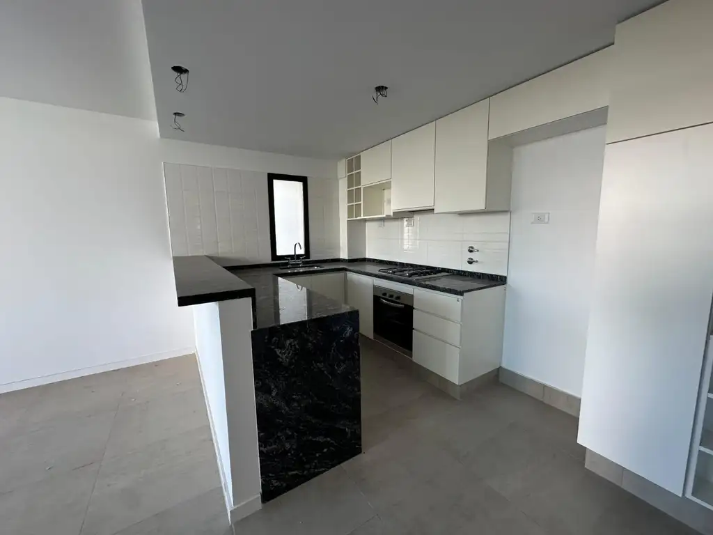 INGRESO A UN AMPLIO AMBIENTE CON COCINA SEMIINTEGRADA CON BARRA DESAYUNADORA Y AMOBLAMIENTO DE PRIMERA CALIDAD, MESADA DE MARMOL Y DETALLES EXCLUSIVOS.