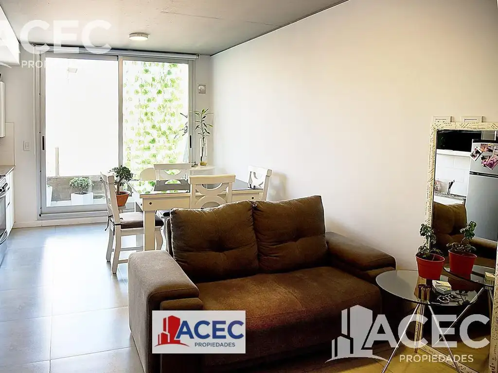 Ingreso al estar comedor con cocina integrada. Salida al balcón al contrafrente, que otorga excelente luminosidad y ventilación al ambiente.