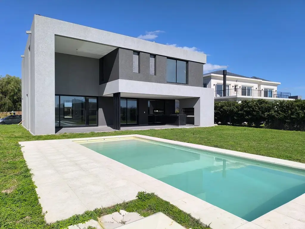 El exterior es un verdadero oasis: una galería semicubierta con parrilla, isla, bacha y hogar a leña, perfecta para disfrutar de reuniones al aire libre. La pileta de ensueño se fusiona con la espectacular vista a la laguna, creando un entorno de paz y belleza natural inigualable.