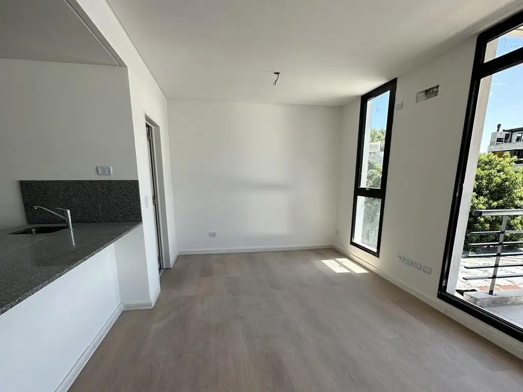 Monoambiente con ventanal que da salida a balcón contrafrente, y ventana que le aporta luz natural en todo el ambiente. Podría generarse alguna división panelable que permita más intimidad en la zona donde se ubique la cama.