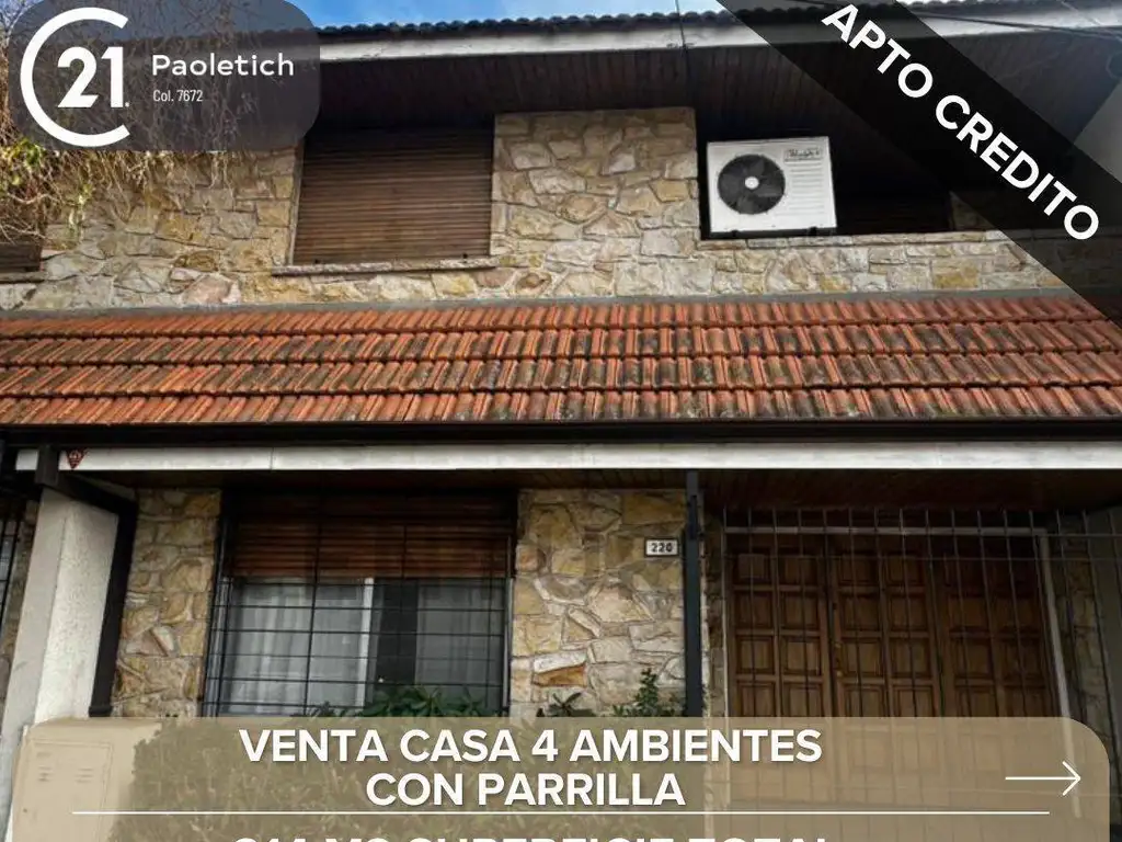 VENTA CASA 4 AMBIENTES EN QUILMES + PARRILLA