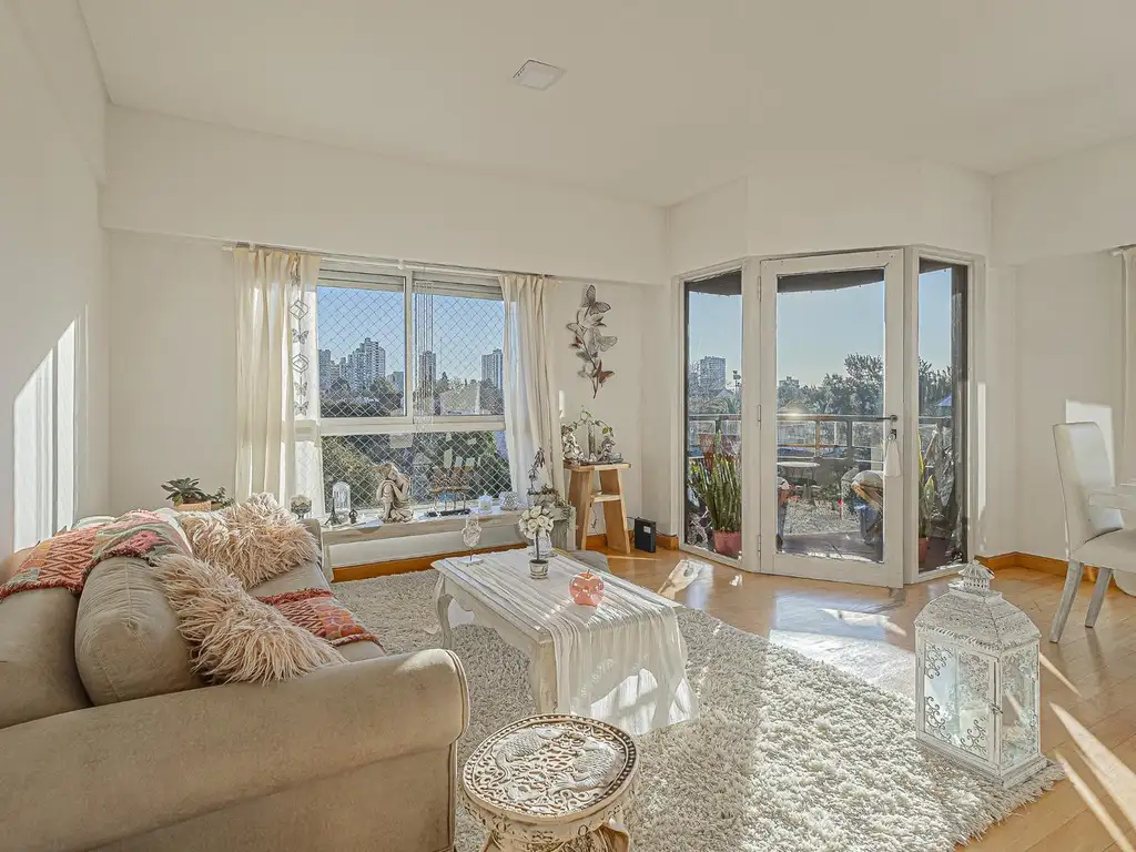 Disfrutá de la luz natural que llena cada rincón: living y dormitorios con salida a un amplio balcón aterrazado, pisos de madera que suman calidez, cocina con mucho espacio de guardado, comedor diario con balcón secundario y lavadero en un balcón abierto.