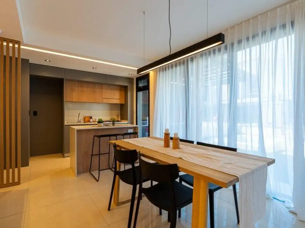 A ESTRENAR - con pisos de porcelanato, mobiliario de cocina tope de gama con bajo mesadas, alacena en Mdf18mm laminados con filos de PVC de 2mm inyectados, zócalos de acero inoxidable, bacha de acero inoxidable, mesada de granito con doble re-grueso, revestimiento en paredes, doble muro compuesto aislado para máxima calidad térmica, terminación con yeso en paredes y cielorraso, cerramientos de aluminio de alta prestación con vidrios DVH(doble vidriado hermético), Puerta de seguridad para ingreso con cerradura multianclaje y llaves exclusivas en blíster, puertas interiores de PVC o similar de alta prestación. Climatización por radiadores y preinstalación de A/A, agua caliente por caldera, tanques de agua, cisterna general con bombas de presión, llenado de piletas y riego de espacios verdes con bomba aparte. Baños con loza sanitaria y griferías de primeras marcas, bañeras, accesorios de baño y espejo, instalación para extractores. Placares completos con interiores.