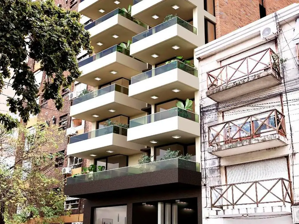 El proyecto se desarrolla en 7 pisos, con tipologías de un dormitorio y disponibilidad de cocheras. Todas las unidades cuentan con balcón y superficies pensadas para un uso residencial eficiente.