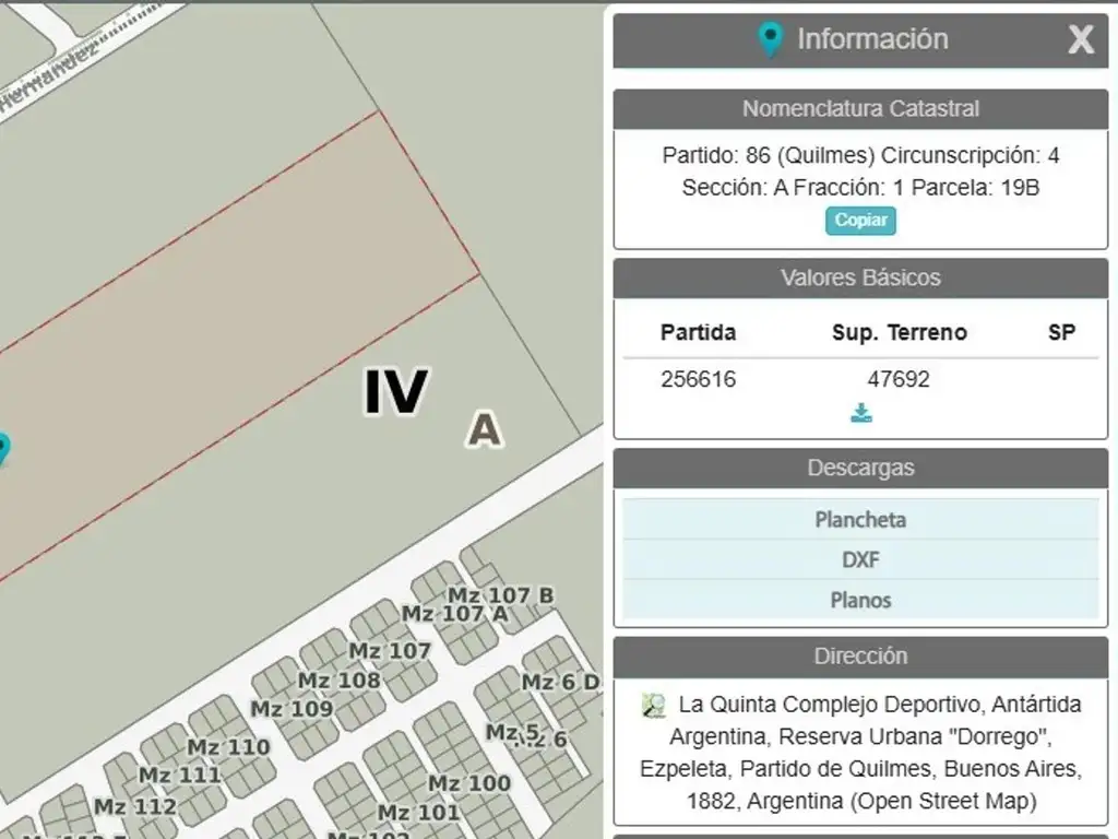 Se ofrece a la venta un campo de más de 40.000 m², estratégicamente ubicado junto a un predio deportivo, en una de las zonas con mayor potencial de crecimiento de Quilmes.