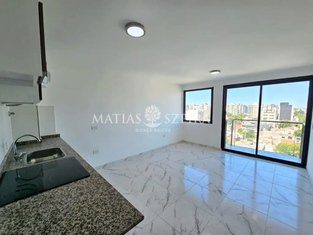 Hermoso departamento, a cinco cuadras del centro comercial de Morón y de la estación del ferrocarril. Posee living comedor integrado a la cocina equipada con mesada de mármol, muebles sobre y bajo mesada, anafe y horno eléctrico, termotanque y espacio para lavarropas. Baño completo. Dormitorio muy luminoso, placard empotrado con interior completo. Balcón. Se entrega con aire acondicionado y cortinas black out. Excelente calidad constructiva: pisos de porcelanato, hall de entrada, aberturas de aluminio anodizado y doble vidrio. Ascensor de acero inoxidable.