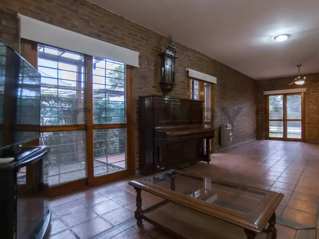 En planta alta tres dormitorios (dos de ellos con placard). Baño completo con jacuzzi. Calefacción central frío-calor. Aberturas de madera. Parque con parrilla y Pileta. Cochera pasante para dos autos.
