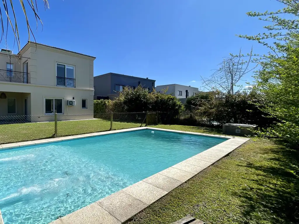 La casa de 230 metros cuadrados con Estilo Frances se encuentra desarrollada sobre un lote de 650 metros cuadrados en cul de sac, dentro del Barrio Vistas, el cual es el mas desarrollado y próximo a los accesos y amenities del emprendimiento Puertos del Lago. Tiene una antiguedad de 8 años, piscina, aberturas Rehau de PVC DVH, Griferías Fv, Bachas Jonhson, Sanitarios Roca Mónaco, pisos de porcellanato, aires acondicionados instalados, losa radiante en todos los ambientes y su estado general es excelente.