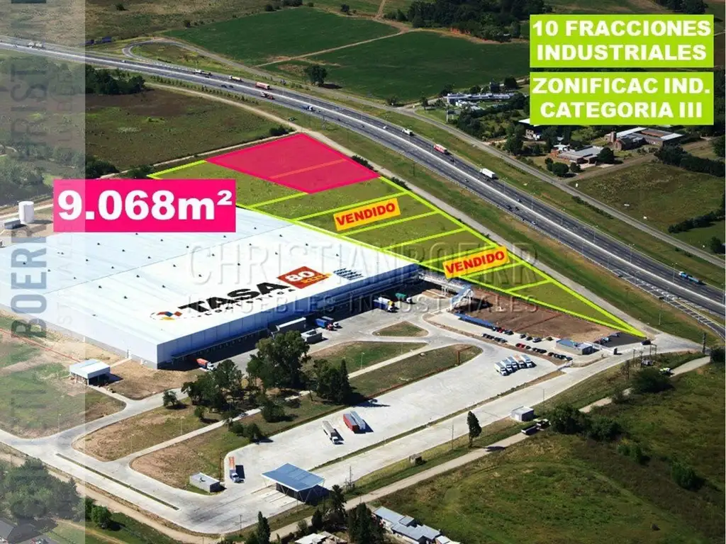 Esta fracción en particular tiene 9.068m², el asfalto llega al vértice y tiene un frente de 105 mts sobre autopista. Se permite construir un máximo de 5.440m² en PB y 9.068m² cubiertos totales (FOS 60%, FOT 100%). Posibilidad de anexar un lote lindero de aprox 5.599m² y otro de 12.355 m²