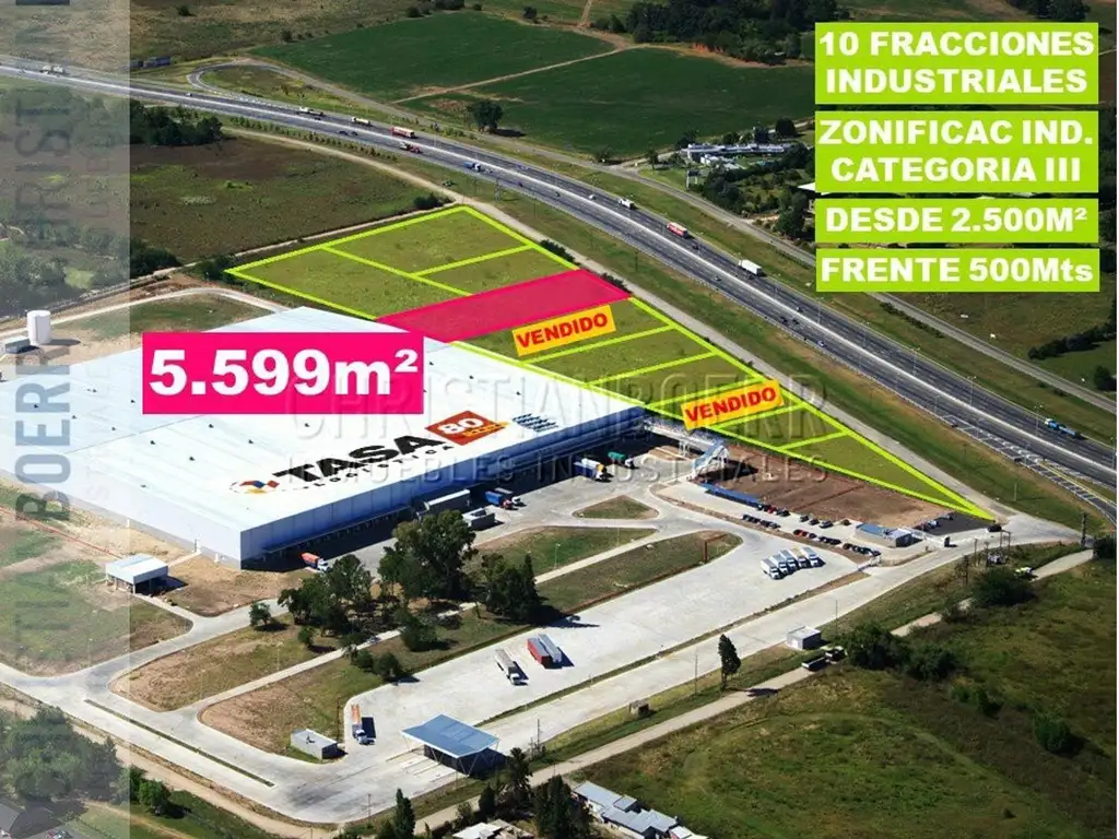 Esta fracción en particular tiene 5.594m², el asfalto llega al vértice y tiene un frente de 42 mts sobre autopista. Se permite construir un máximo de 3.359m² en PB y 5.594m² cubiertos totales (FOS 60%, FOT 100%). Posibilidad de anexar un lote lindero de aprox 3.351m² y otro de 12.355 m²