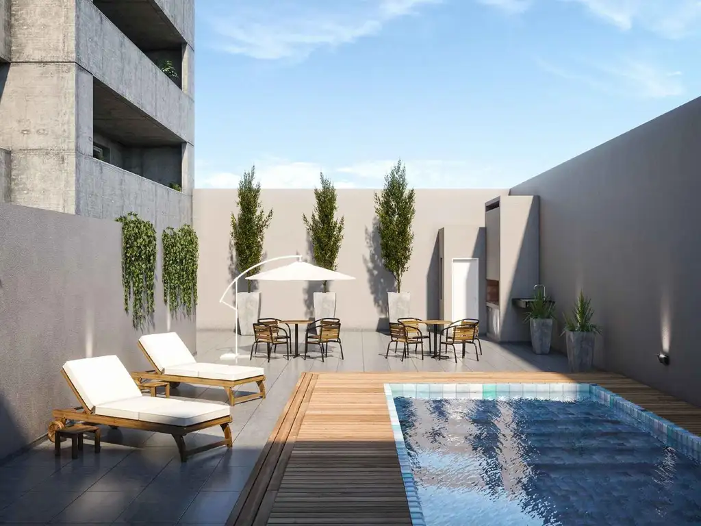 Amenities de categoría: piscina, solárium, deck, patio, parrillero y quincho cubierto.