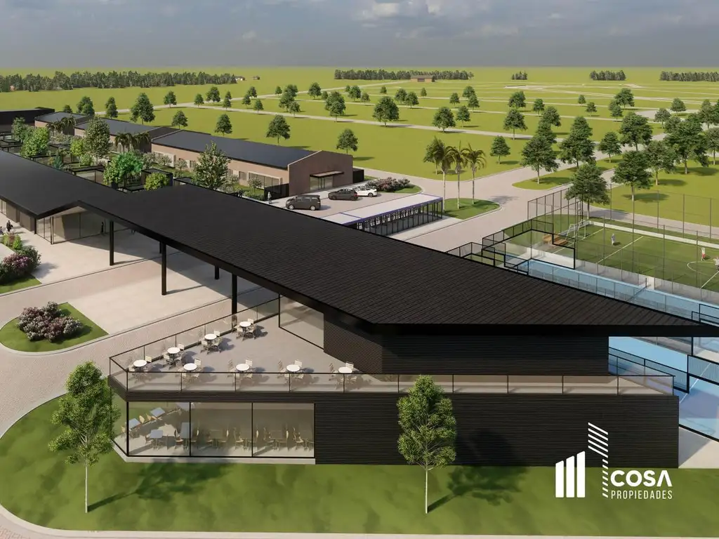 Desarrollo de área deportiva: 2 canchas de paddle, 1 cancha de tenis, 1 cancha de futbol 7