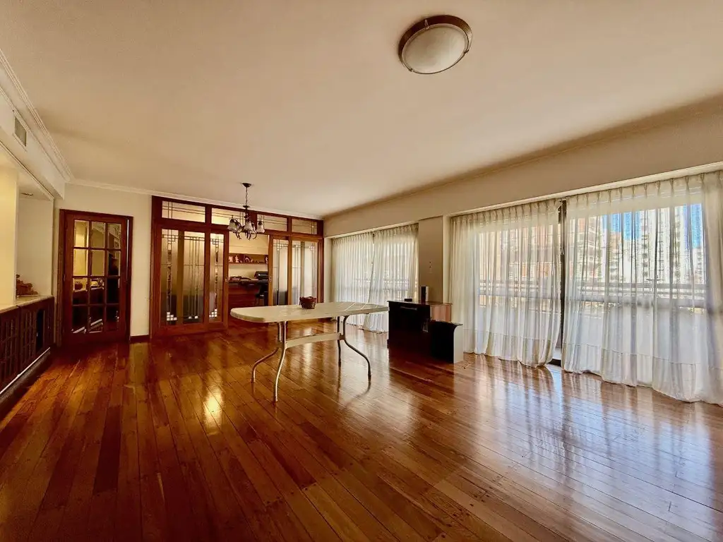 Cuenta con 164 m2 cubiertos. Palier privado. Balcón corrido al frente. Amplio living comedor. Cocina comedor diario independiente. Tres dormitorios, el principal en suite con balcón. Escritorio o 4to dormitorio. Baño completo con antebaño. Dependencias de servicio con lavadero independiente y baño auxiliar. Cochera pasante para dos autos. Baulera