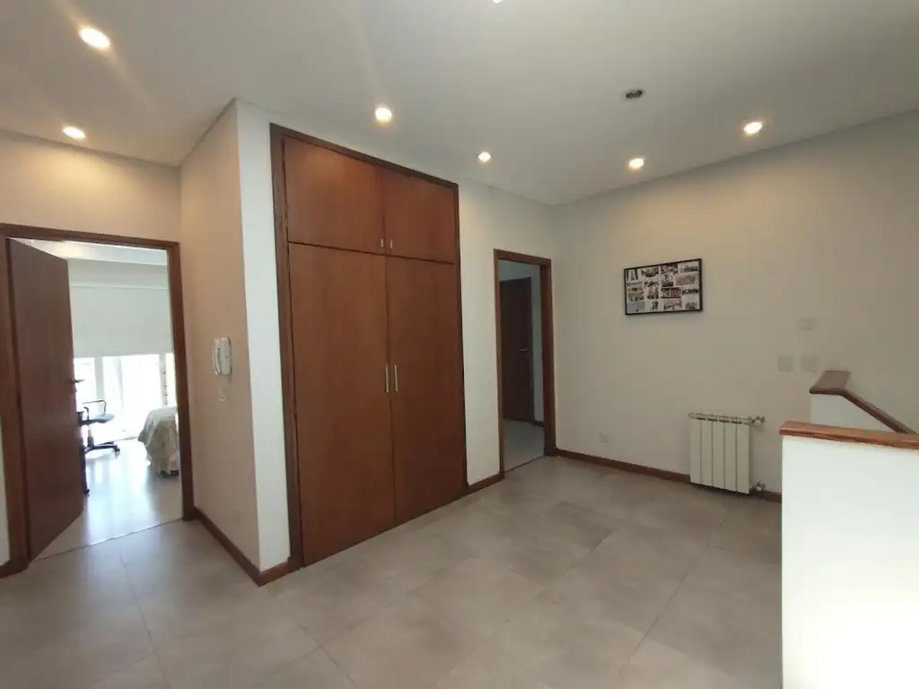 La planta alta tiene un gran ambiente de circulación central, enorme con biblioteca y con mucho placards de refuerzo, donde se puede armar un estar o escritorio. Tiene cuatro dormitorios bien distribuidos. La habitación principal es enorme ,con excelente vestidor, luz natural y baño con ante baño . Salida a una lindísima terraza con vista a la pileta y el jardín. Los otros tres dormitorios son cómodos espaciosos y todos con excelentes interiores de placar, comparten un baño con ante baño muy cómodo y de buen gusto y uno de ellos tambine da a la terraza con vistas al jardin.