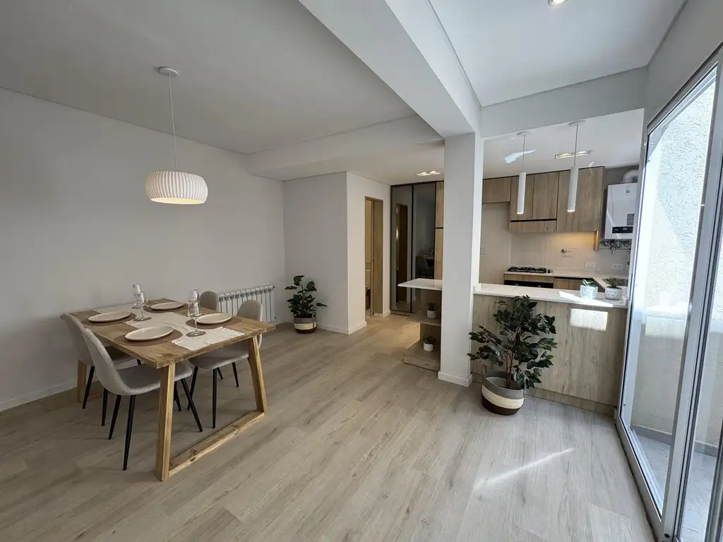 Amplio living comedor con cocina semi separada por una barra. Todos los ambientes tienen salida a un patio de uso exclusivo con parrillero. toilette de acompañamiento.